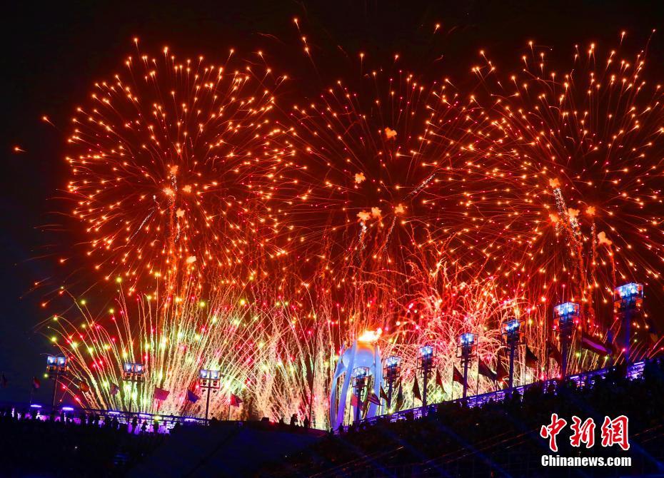 2月25日,平昌冬奥会闭幕式上烟花璀璨。 中新社记者 宋吉河摄