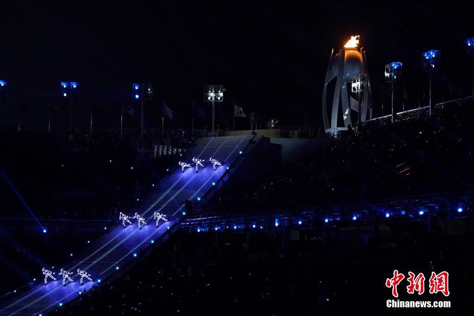 当地时间2月25日,2018平昌冬奥会闭幕式在平昌奥林匹克体育场举行,现场演出精彩夺目。图为闭幕式现场的文艺演出。中新社记者崔楠 摄