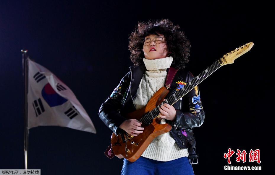 当地时间2月25日,2018平昌冬奥会闭幕式在平昌奥林匹克体育场举行,现场演出精彩夺目。图为韩国歌手现场献艺。
