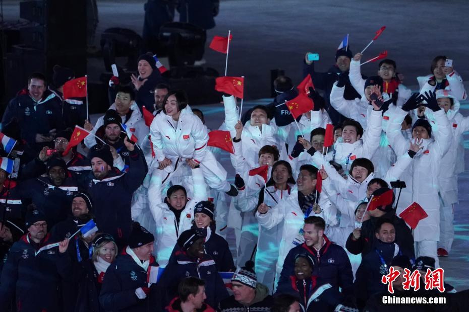 当地时间2月25日,2018平昌冬奥会闭幕式在平昌奥林匹克体育场举行,现场演出精彩夺目。图为中国运动员参加闭幕式。中新社记者崔楠 摄