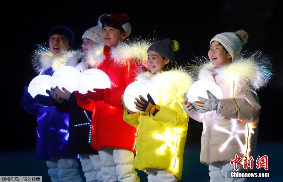 当地时间2月25日,2018平昌冬奥会闭幕式在平昌奥林匹克体育场举行,现场演出精彩夺目。图为开幕式时的五位儿童再次亮相。