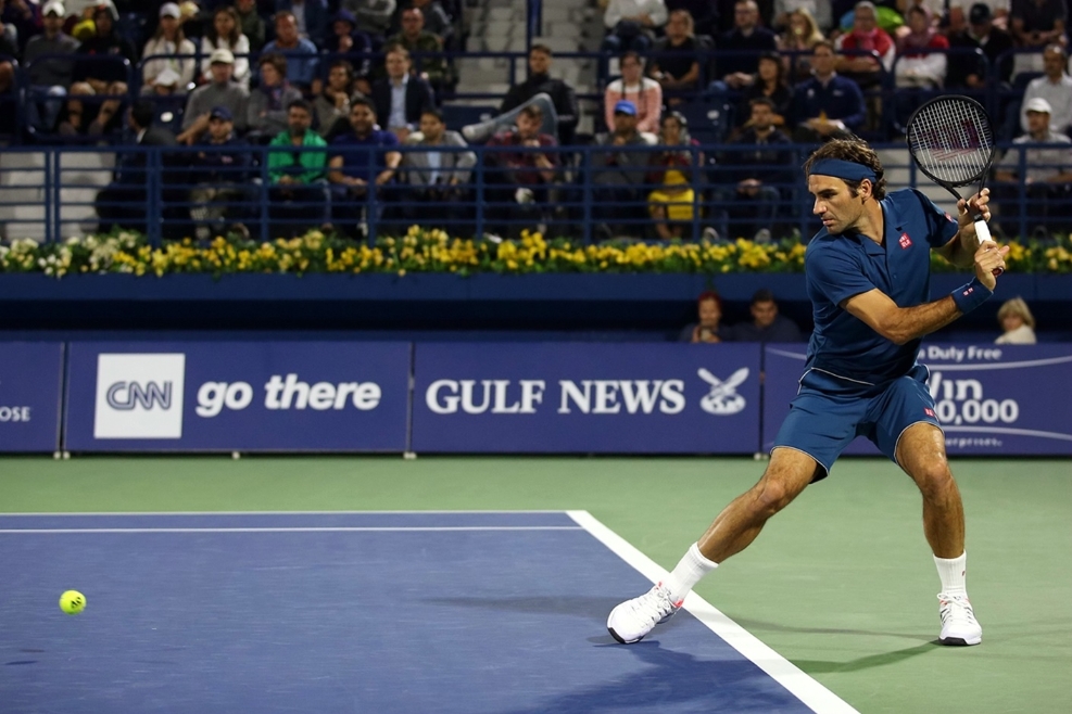 2月25日,费德勒在比赛中回球。摄影:马哈茂德·哈立德