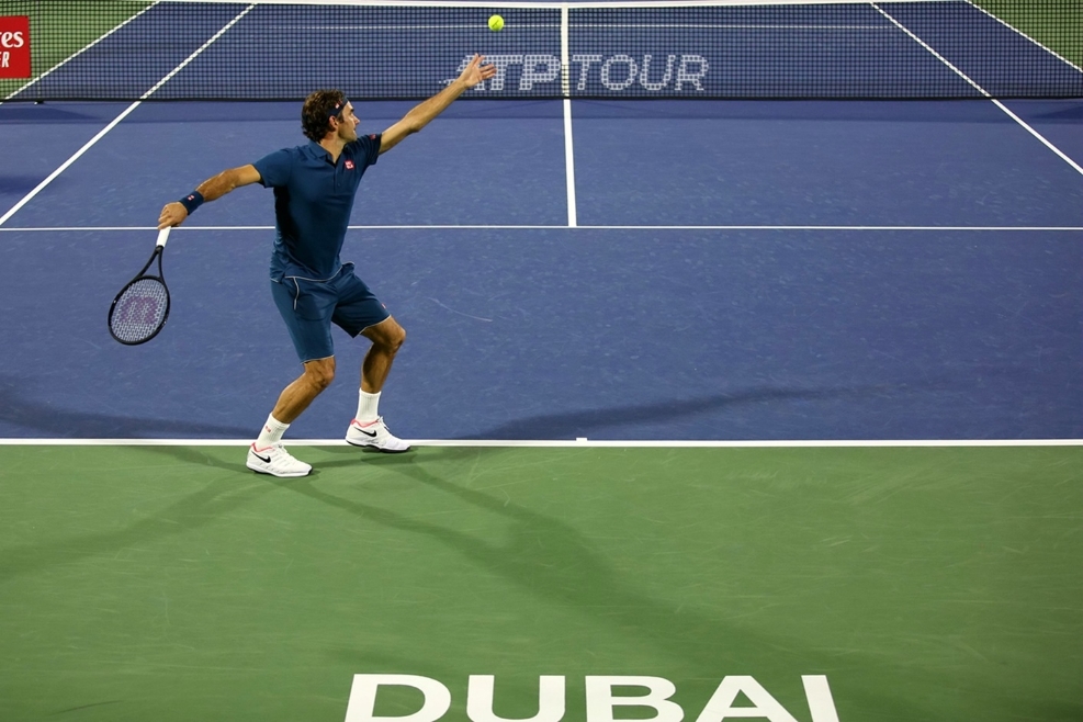 2019ATP迪拜网球赛 费德勒以2比1战胜科赫尔斯奇雷伯
