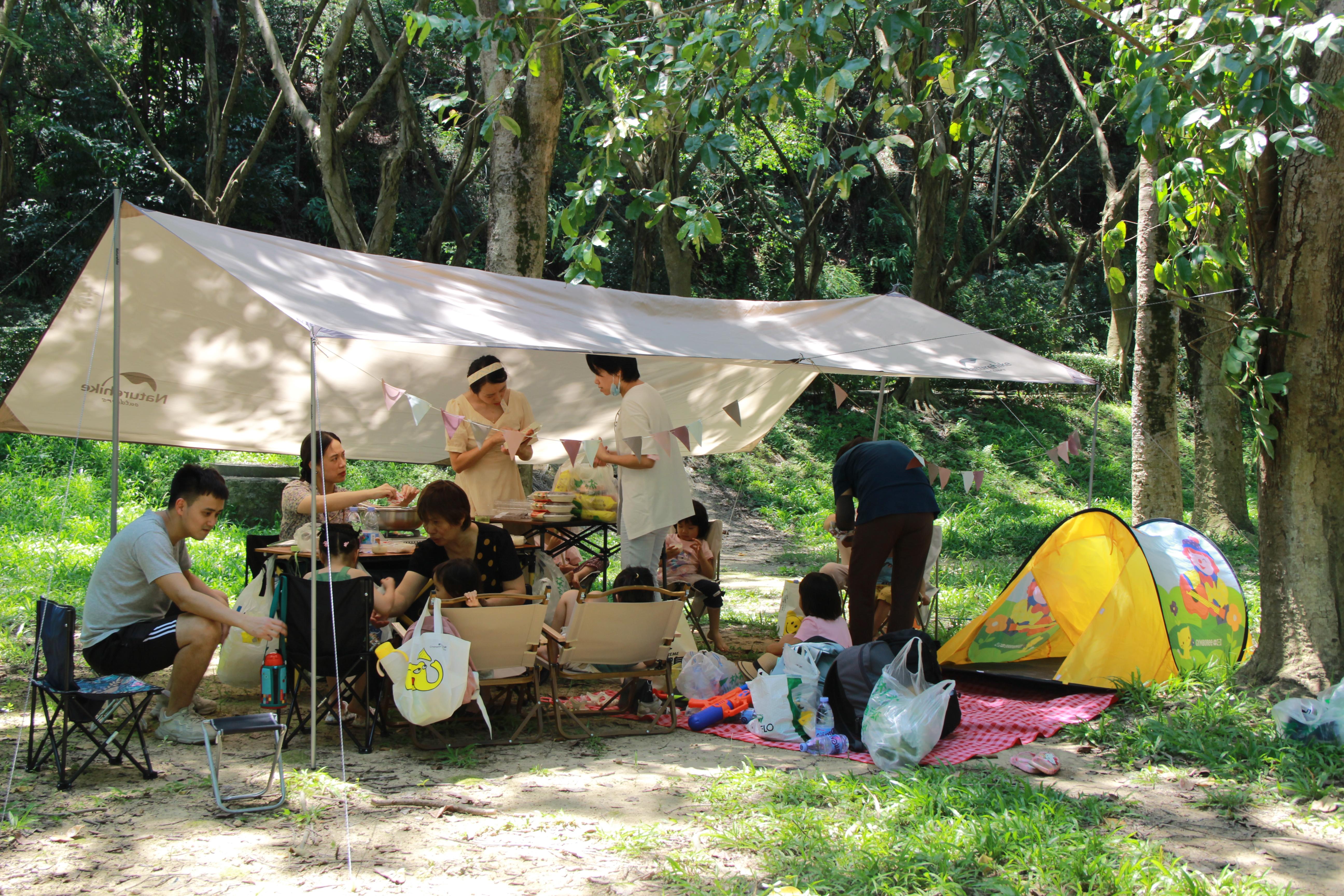 在与“油腻妈”的交谈中,能够感受到她有一颗活力满满的童心。她在社交平台发布了几百条广州露营攻略,分享与露营有关的一点一滴,也让很多不曾相识的人因爱好露营而聚在一起,她笑嘻嘻地表示:“很多人被我带入坑了!”